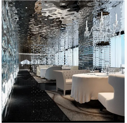 تكسية الجدران: تُستخدم في ردهات الفنادق ومتاجر التجزئة الفاخرة والمصاعد لإضفاء مظهر أنيق ومستقبلي.