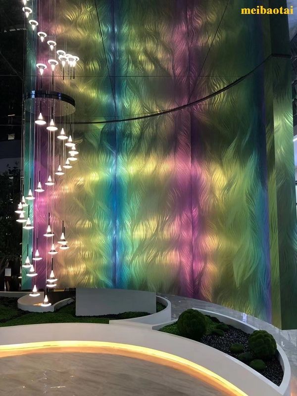 عالية الجودة مخصصة نمط الليزر قوس قزح لون الفولاذ المقاوم للصدأ ورقة الديكور اللوبي